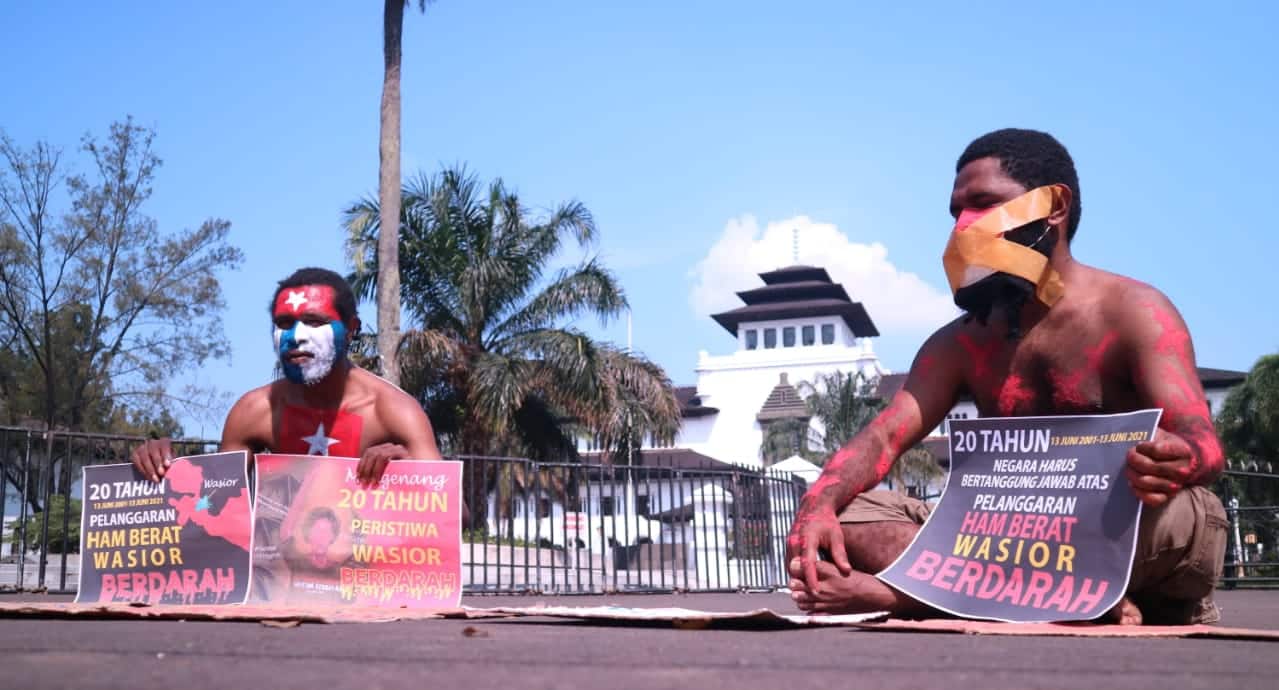 Jayapura, Jubi – Mengenang kembali 20 tahun Wasior Berdarah, 13 Juni 2001, dua orang mahasiwa Papua di Bandung, Jawa Barat, menggelar aksi bisu. Keduanya adalah mahasiwa aktif di Universitas Pendidikan Indonesia dan Universitas Ahmad Yani. Aksi tersebut berlangsung di depan Gedung Sate Bandung atau Kantor Gubernur Jawa Barat, dimulai dari pukul 11.00 WIB hingga 13.40 WIB.