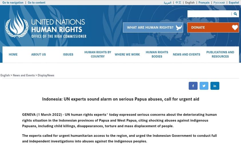 JENEWA (1 Maret 2022) – Pakar hak asasi manusia PBB* hari ini menyatakan keprihatinan serius tentang memburuknya situasi hak asasi manusia di provinsi Papua dan Papua Barat di Indonesia, mengutip pelanggaran yang mengejutkan terhadap penduduk asli Papua, termasuk pembunuhan anak, penghilangan, penyiksaan dan pemindahan massal orang-orang.